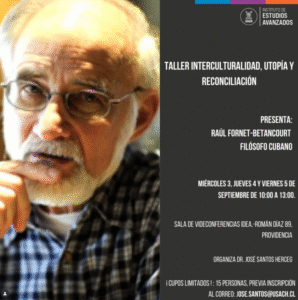 Miércoles 3, jueves 4 y viernes 5 de septiembre, de 10:00 a 13:00 hrs.: taller: interculturalidad, utopía y reconciliación