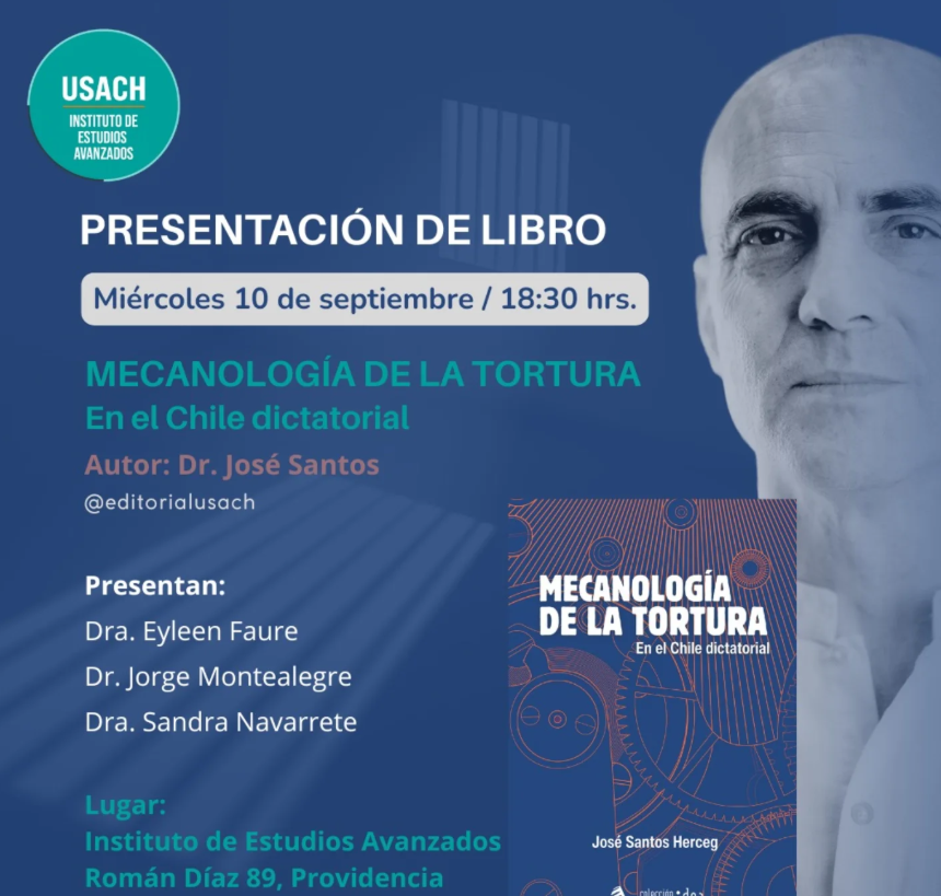 El investigador y académico de nuestro Instituto, José Santos Herceg presentará su más reciente obra: “Mecanología de la tortura en el Chile dictatorial”, publicada por @editorialusach Editorial USACH en la Colección IDEA.