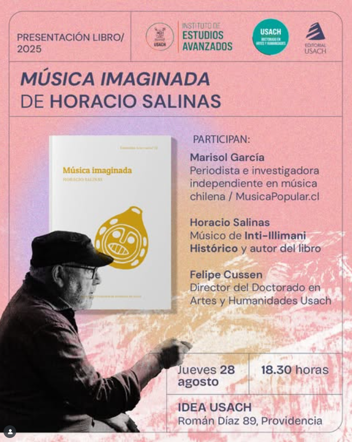 El próximo jueves 28 tendremos el honor de recibir a Horacio Salinas en @ideausach para conversar, junto a @solgarcia__ , sobre su último libro “Música imaginada”, publicado por @editorialusach . ¡Todos/as invitados/as!